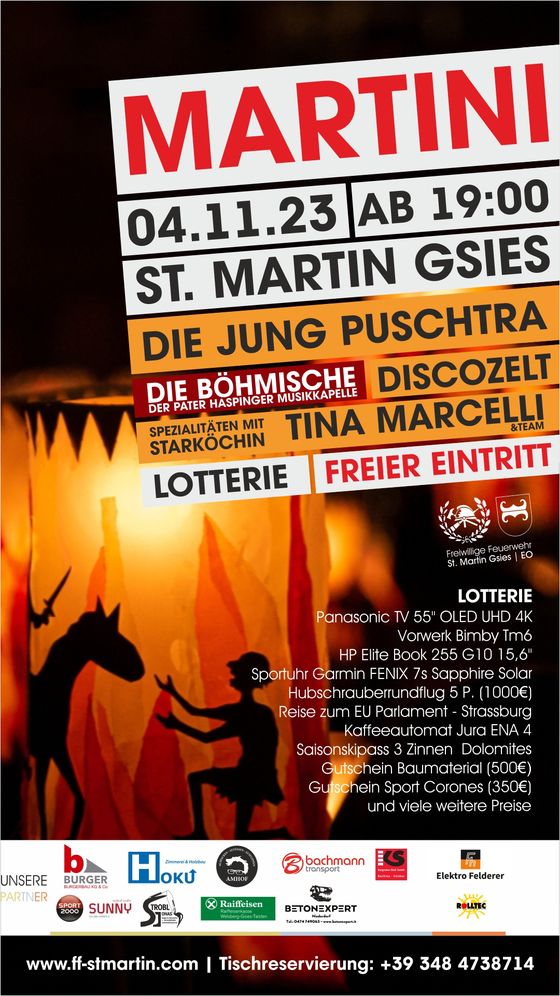 | am 04.11.2023 ab 19:00 Uhr im Bürgerhaus von St. Martin Gsies |